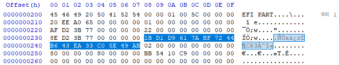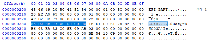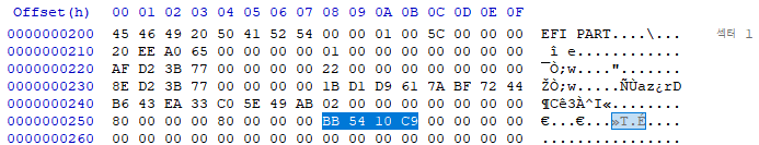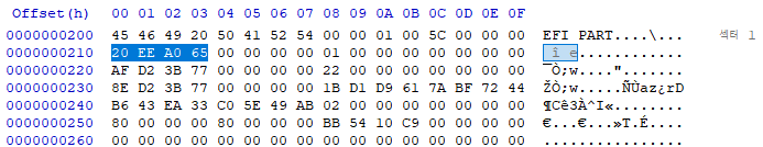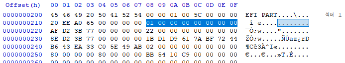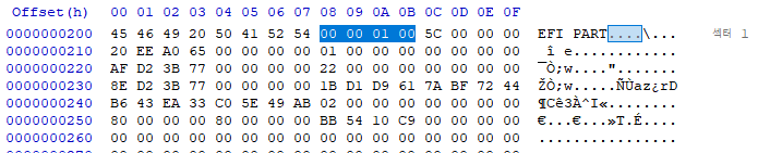GPT Header는 1번 Sector 에 위치