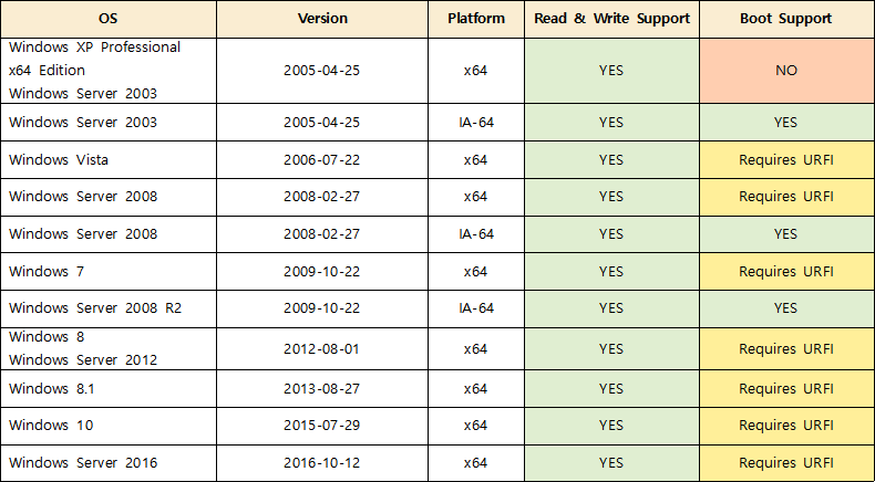 2. GPT Support According to Operating System