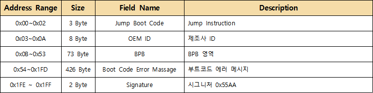 BPB(BIOS Parameter Block)의 Layout을 확인해 보겠습니다.