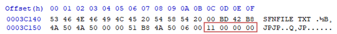 위에서 본 파일 처럼 0x11 인 17바이트 인것을 알 수 있습니다.