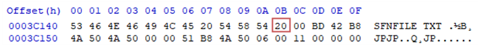 확장자가 없는 파일이라면 0x202020으로 채워 집니다.