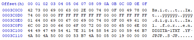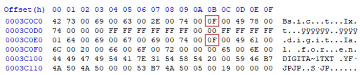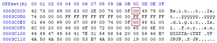 기본적으로는 아스키 코드값이 들어 있지만 0x00 offset 에 특수한 값이 들어 있는 경우가 존재합니다.