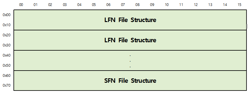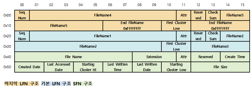 위에 있는 File Structure 는 SFN(Short File Name) 파일 구조 이기 때문에 SFN 파일을 먼저 알아 보겠습니다.