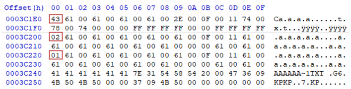 └ 0x00 : 파일이름이 사용된 적이 없음