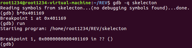 0x401169 에 break를 걸고 run을 진행해 보겠습니다.