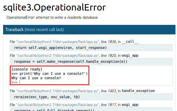 1번 질문에서 localhost:5000에 접속 해서 디버깅 모드시에 에러가 터졌을때 콘솔을 이용할수 있다는 것을 확인 했었습니다.