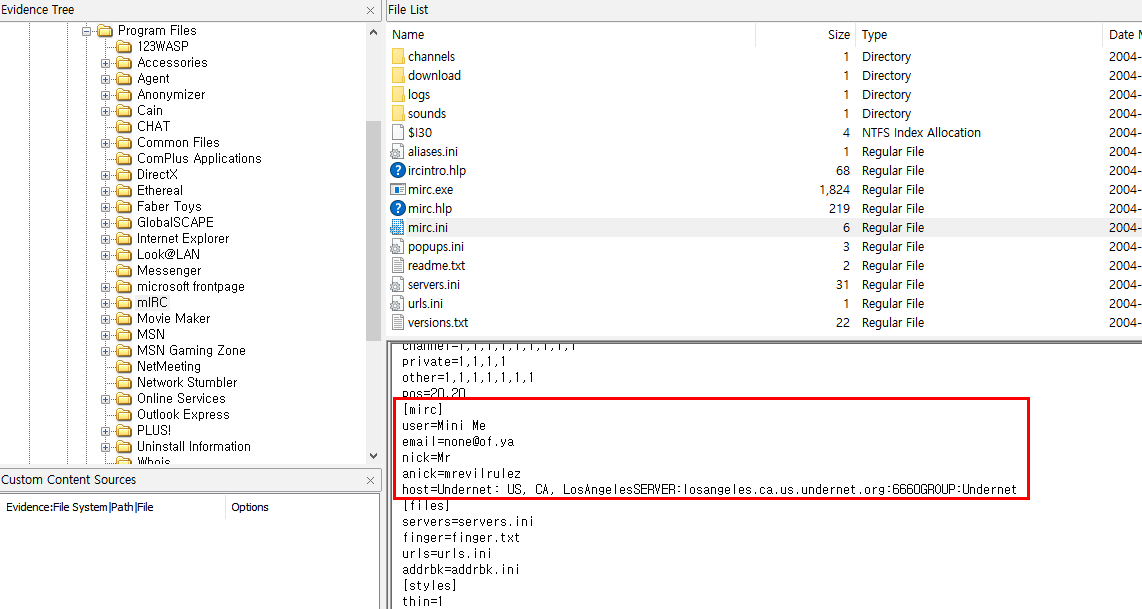 설치된 MIRC 프로그램의 이름은 mIRC 입니다. 아래의 경로에 파일이 있기 때문에 해당 경로에 가서 설정 파일을 보면 될것 같습니다.