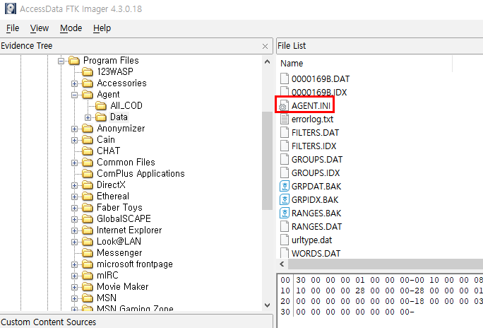 해당 파일은 001~008로 chainning이 될것 이기 때문에 001 파일을 FTK Imager를 이용해서 열어볼수 있습니다.