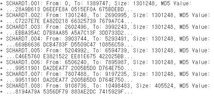 각각의 파일의 해시값은 아래와 같습니다.
