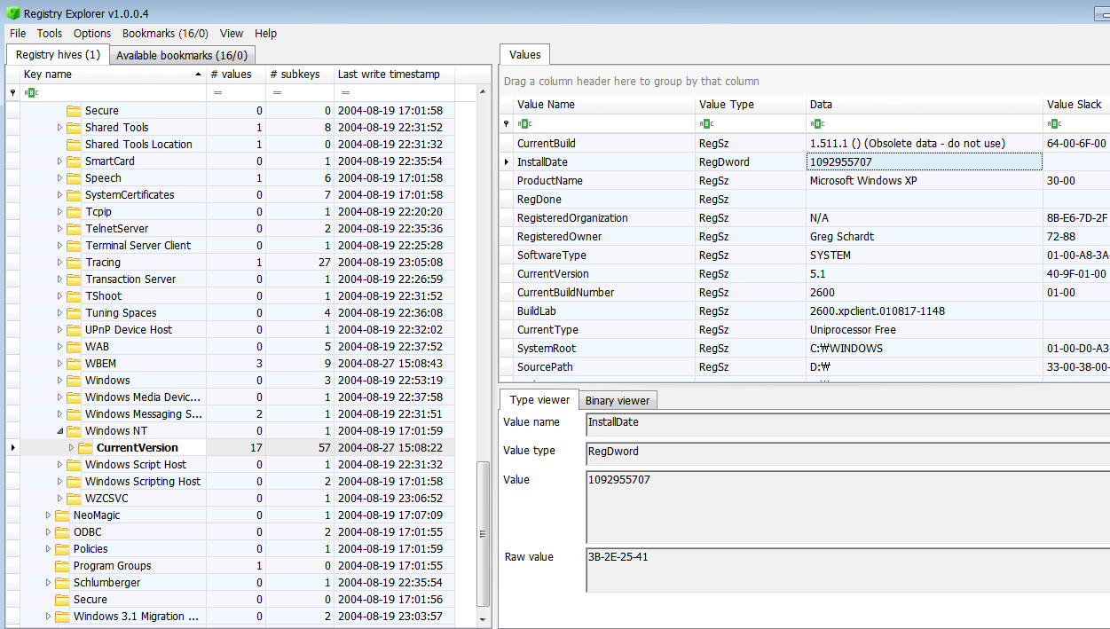 Path : HKLM\SOFTWARE\Microsoft\Windows NT\CurrentVersion - InstallDate
